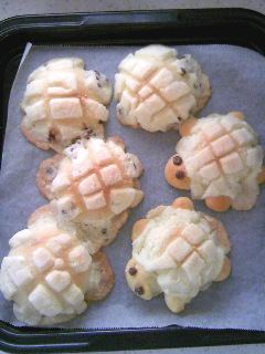 私もメロンパン作ってみたくて、レシピを見たことがあるんだけど、手間がかかるのねぇと思ったとたん、いっきに作る気なくなっちゃって。。。